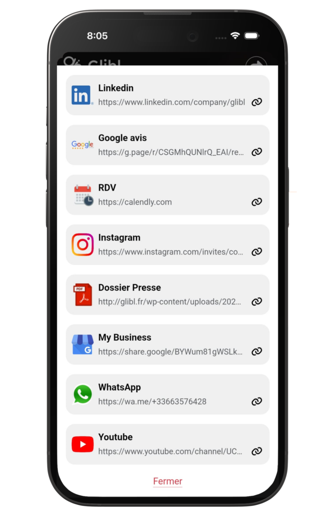Glibl partage TOUT ce que vos interlocuteurs doivent savoir pour travailler avec vous ou vous recommander.