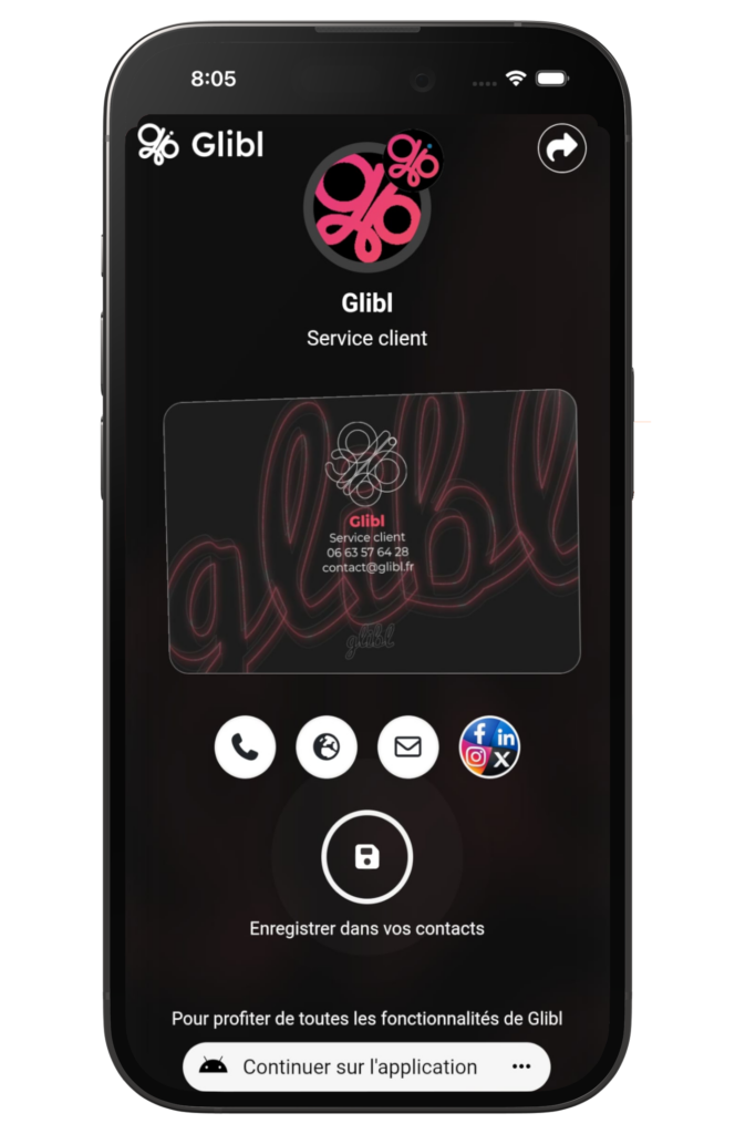 Votre interlocuteur enregistre votre carte même s’il n’a pas l’application Glibl.
